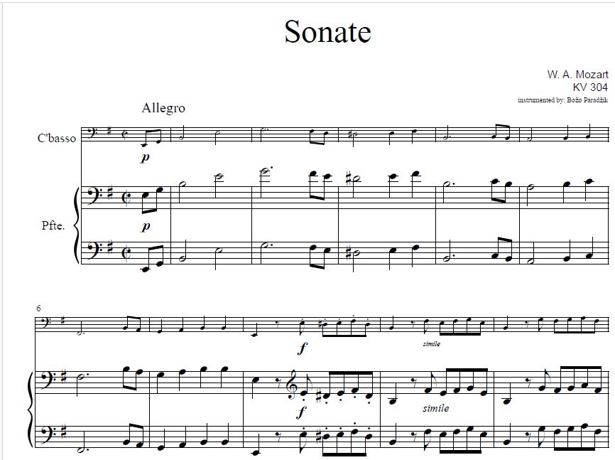 MOZART | Sonata E minor KV 304 | BASS & PIANO